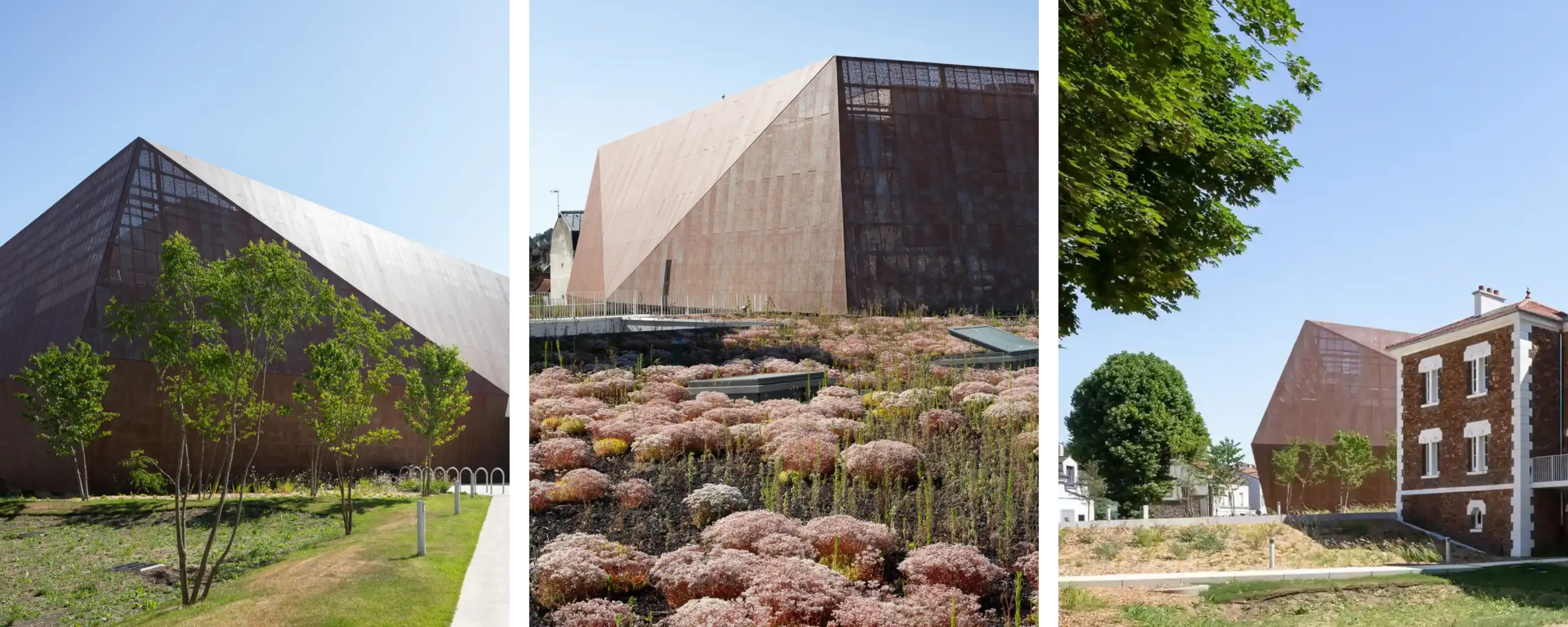 Quatre patios végétalisés, plus de 1 000 m² de toitures vertes et la plantation de plus de 45 arbres font de la Cité un espace agréable, propice à la création, à la rencontre et au partage.