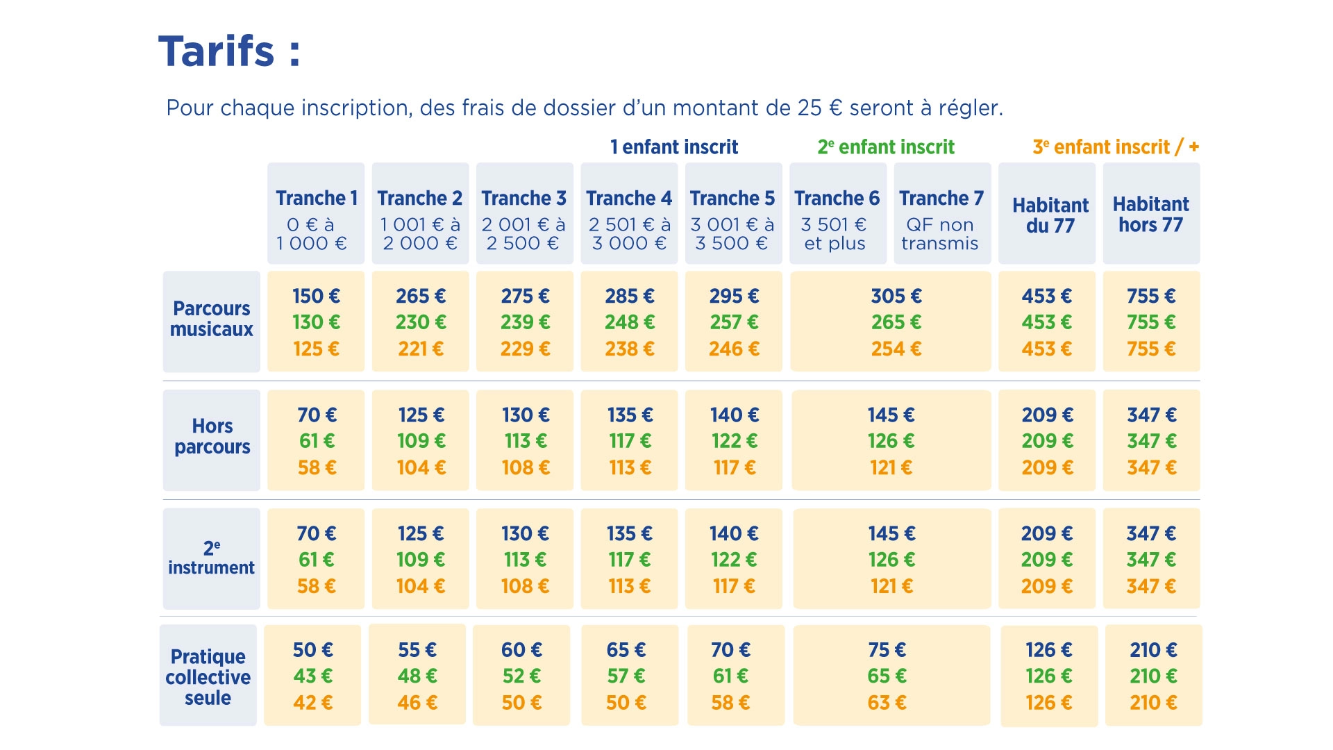 - La formation musicale : apprentissage du langage musical (lecture de notes, rythme, écoute, théorie)